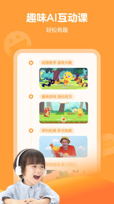 通过原创动画,真人互动教室,有趣的互动练习,AI评估和专业老师的陪伴指导,可以激发孩子的学习兴趣。