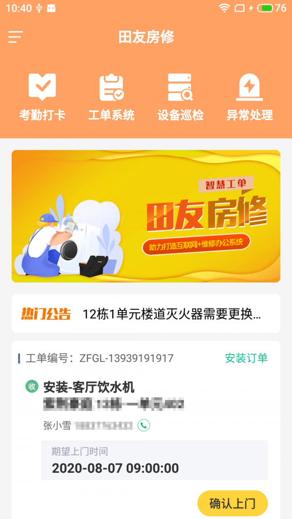 1.田友房修App为房屋维修工作人员提供