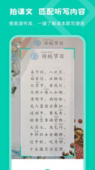 2、中小学生需要快速找到课本听写内容。
