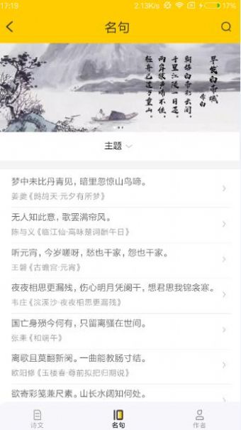 2.用户可以根据作者,朝代,类型或者是主题进行自由的查找,选择自己喜欢的进行学习