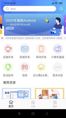 2、基于目前的互联网职业进行了分类,每个类别有不同的教程,用户可以直接查看课程的目录以及获取资料链接;