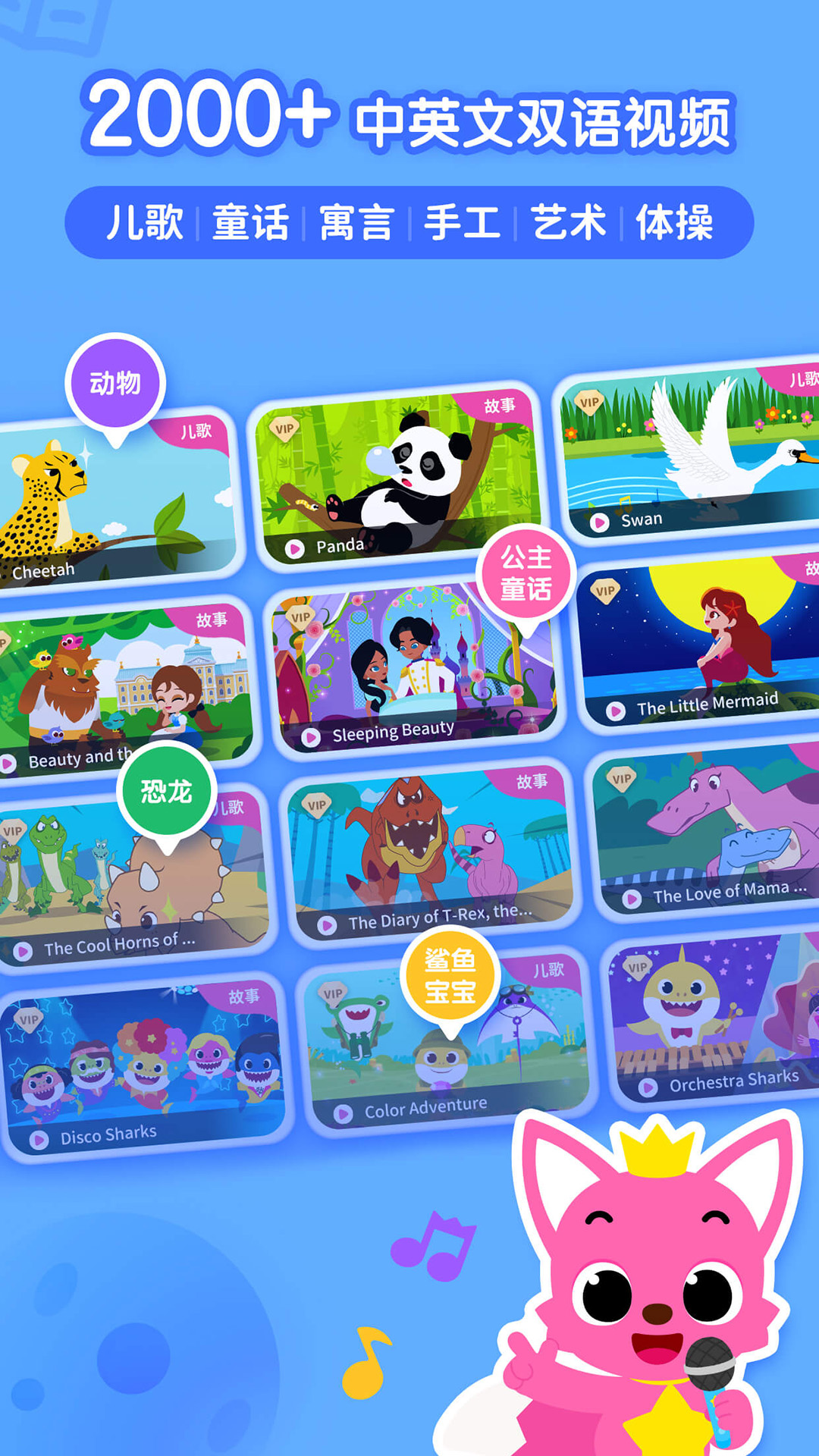 3、这里划分超多版块内容:儿歌、故事、等内容,方便用户更好的进行双语启蒙学习。