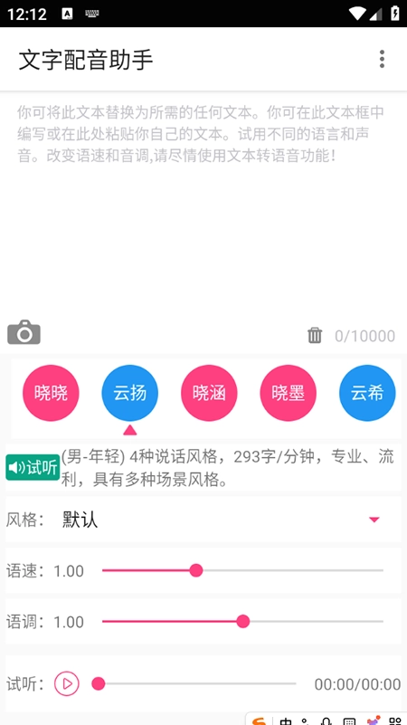 1.真人在线发声,多种不同的风格可以在线进行自由选择。