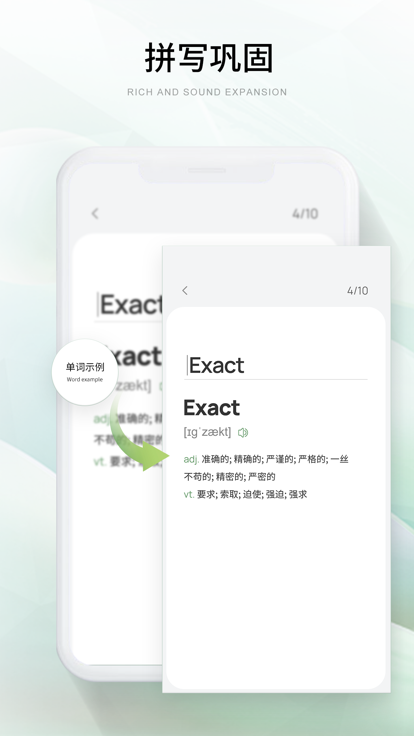 3、通过拼写来巩固记忆,调动多个感官来加深用户的记忆效果。