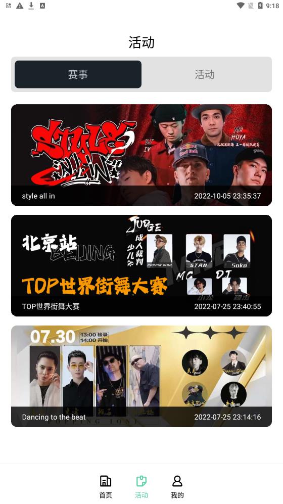 1、舞氪中还有各种街舞赛事的信息,我们可以在线进行查看和了解。