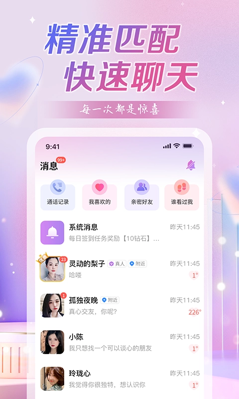 1、在这里进行精准匹配,快速在线聊天,为用户带来惊喜体验。