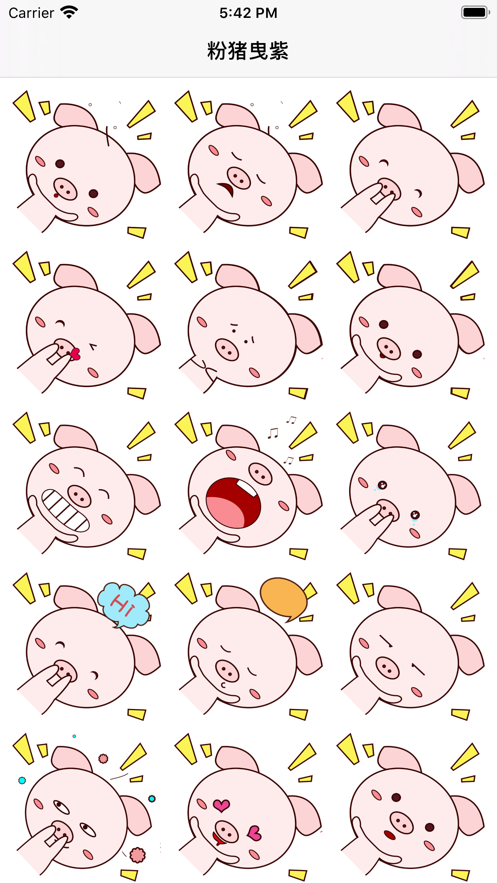 粉猪曳紫app是画风非常有趣呆萌的表情贴纸软件,女孩子一定会喜欢的,主要以软萌粉嫩的小猪搭配一些恶搞文字,可以在聊天互动中使用,相信你们之间的关系可以亲密不少,所有表情图片都是高清无水印,而且全部免费下载,各个平台都能使用。