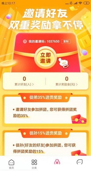 现在注册填写邀请码获得5元现金奖励,可以进去APP直接免费拼团,获得补偿金达到1元可以提现。提现微信秒到!