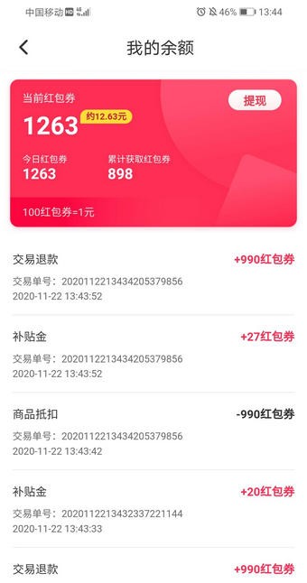 2、拼团结果,仅一人可拼中商品并随机获得部分红包券;未拼中商品者,除购物款全额退还至余额外,每人还将额外随机获得剩余的红包券。