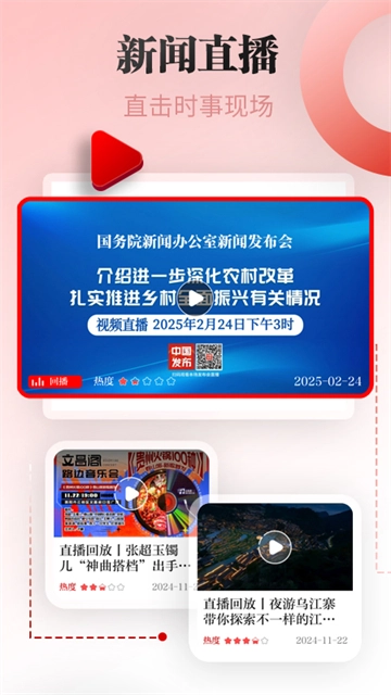3、【视频直播】为用户提供最新的新闻视频直播,可以和上万同胞互动。