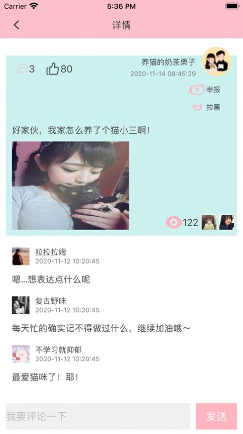 这使我们更容易养猫,当我们遇到养猫的问题时,我们可以在平台上相互交流。