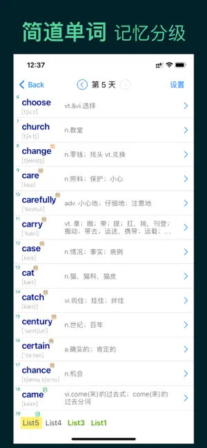 3、通过艾宾浩斯记忆算法,对词书的进行列表化管理,高效规划并强化你的单词记忆。