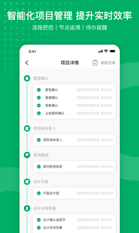 2.台化管理项目进度,每一个项目节点都清晰可追溯,管理更智能化、人性化;