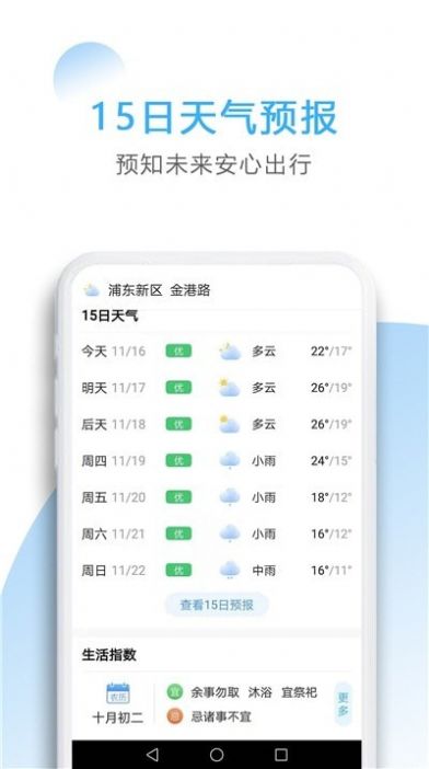 未来15天的天气预警系统将及时为您提供服务,详细到小时的天气提供。