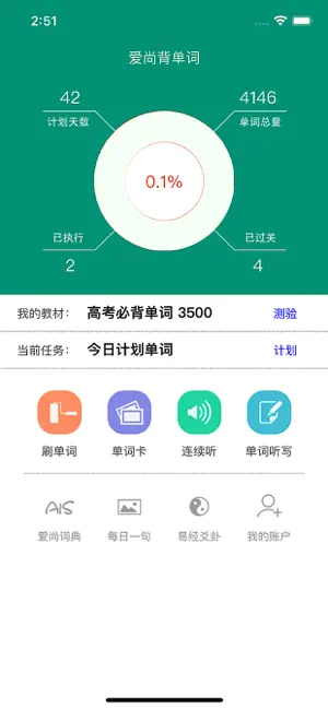3、科学分配单词,自动调整计划。生词错题再现,逐一确认过关。
