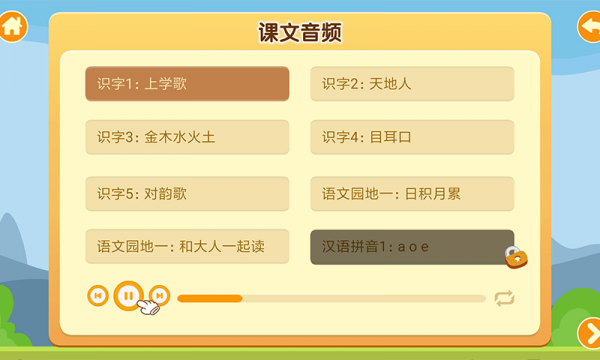内容同步部编人教版语文教材。主要包含课文点读、课文音频、拼音学习、生字学习、词语听写、小学古诗及国学等内容。