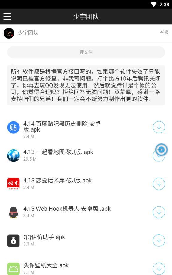 少宇团队app是一款十分专业实用的手机软件库,为用户们提供了丰富的软件资源,各种类型的软件都可以在上面找到,全部都可以免费下载使用,不定时的还会更新,有着强大的搜索引擎系统,需要的软件资源在线就可以搜索到,寻找资源起来更为便捷!