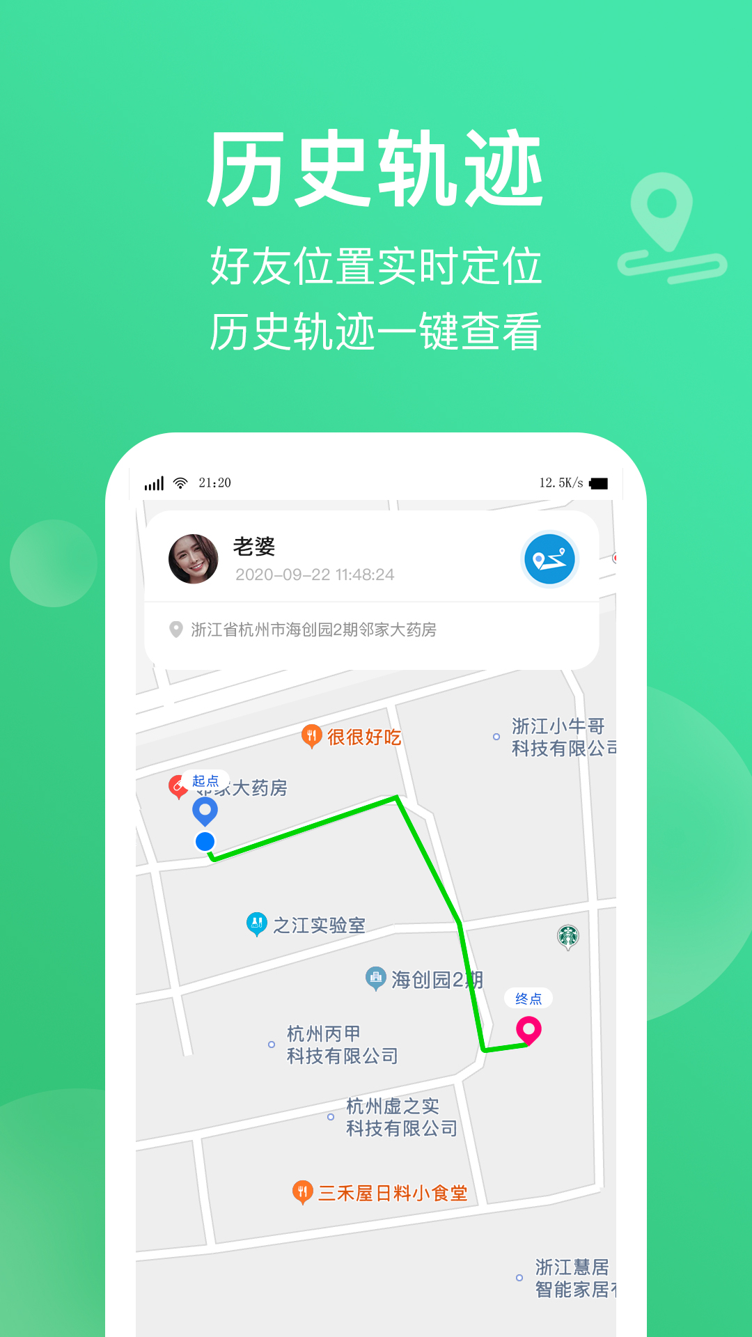[实时守护]查询历史轨迹,不管是老人、孩子还是爱人,快定位时刻守护家人的安全。
