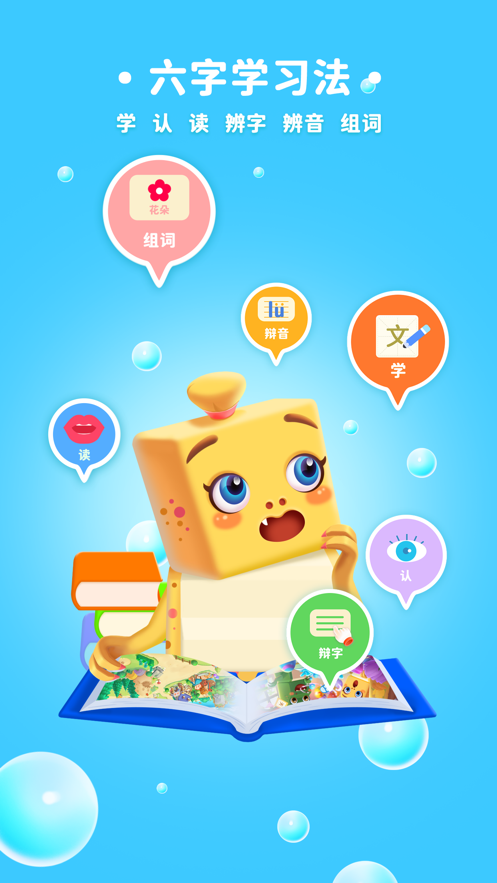 2、识字板块与拼音板块中都为孩子量身打造了,以"学认读字音词"6个环节来帮助孩子快乐提高。