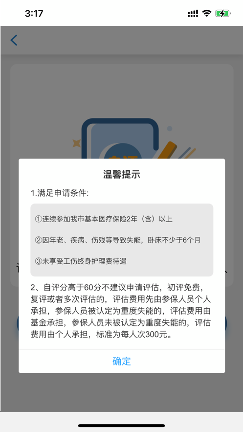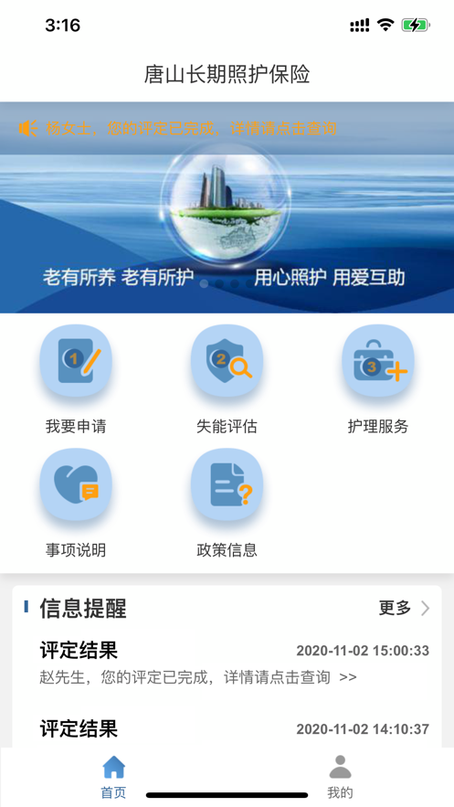 1.功能包含:申请评估,失能评估查询,护理服务评价,事项说明,政策信息;