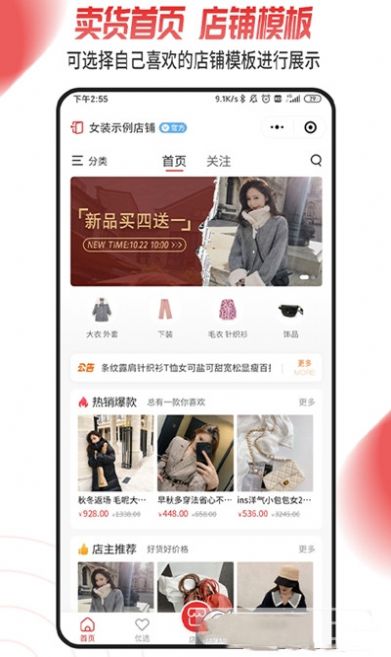 1、开店便捷,一分钟拥有线上店铺,一键上传商品,快速转发商品到朋友圈;