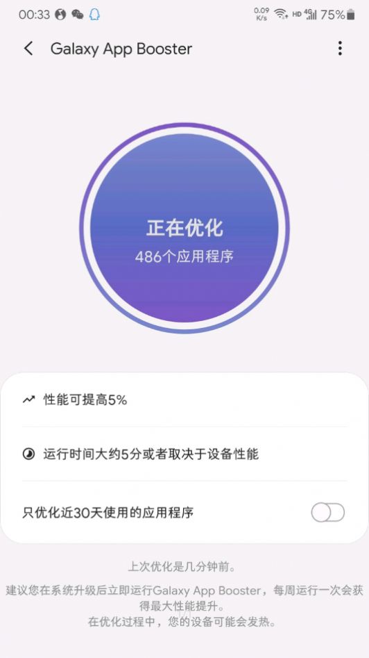 Galaxy App Booster 酷安app是一款可以帮助用户提升手机运行1.5倍的流畅度的手机软件,是专门针对手机清理加速的服务软件,功能强大稳定,即使在后台也可以自动帮助用户优化手机,持续为用户带来稳定的加速服务。