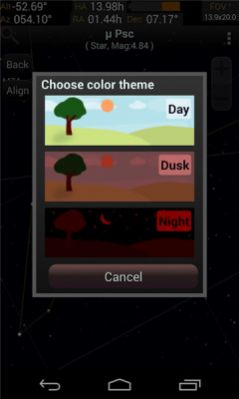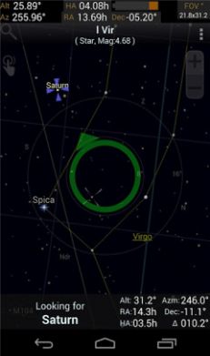 3、显示卫星和图像,以跟随手机的方向,搜索指定的天体和其他功能;