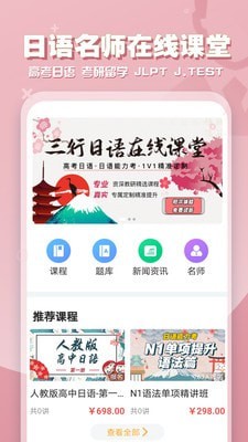 专业的日语在线学习课堂软件,为用户们提供了优质的在线教学课堂,用户可以根据自身的基础来学习,同时还有一对一的在线辅导服务!
