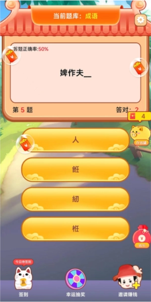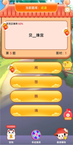3、通过关卡挑战,逐步提高学习成语的难度,达到习惯慢慢学习的目的。