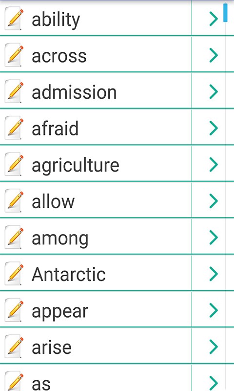 3、单词的零度记忆按字母顺序排列,搜索起来特别方便。一个庞大的词汇库可以很容易地记住。