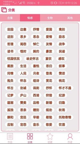 3、收藏功能:用户可以将自己喜欢的古诗词添加到收藏夹里,方便以后查阅。