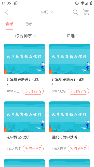 自学考试是对自学者进行的以学历考试为主的高等教育国家考试,是个人自学、社会助学和国家考试相结合的高等教育形式,是我国社会主义高等教育体系的重要组成部分。大牛教育自学考试开设有自考全日制、自考业余制、自考网络班三种班型。和其他的只提供单一的面授或者网授课程的教育培训机构相比,大牛教育给了自考学员更多的选择性,更加精准的教材版本,更加准确的自考资讯,更高的考试通过率。