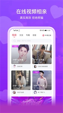 1、同城优质的婚恋交友平台,高效、真诚、专注,即见通过语音、视频、文字为用户快速匹配合适的对象;