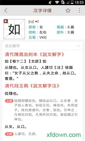 汉字解释:提供详细的汉字解释和字形演变历史。