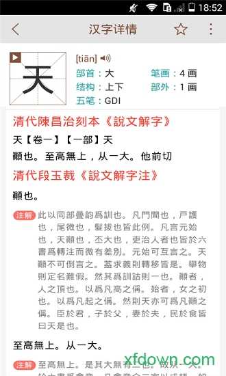 说文解字是一款汉字学习工具,由着名的汉学家许慎所编写的《说文解字》为基础,结合现代汉字学的研究成果和技术手段,为用户提供全面的汉字解释和演变历史。