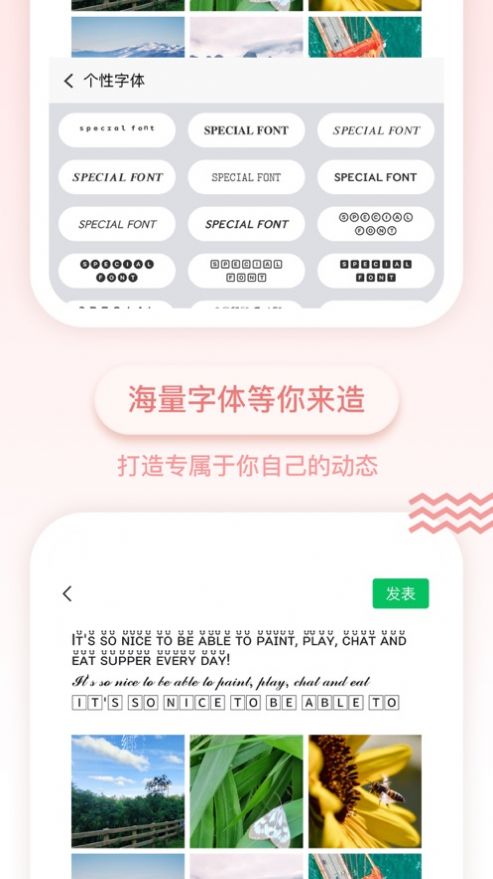 1、字可以在各种社交平台App上使用,带给你超酷、超赞、超个性的社交发言新体验。