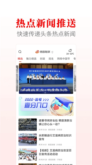 德昌融媒app是一款优质的城市融媒体资讯软件,专为德昌本地的居民用户设计打造,由本地的政府媒体权威发布的热点城市新闻,同时每天都会及时的更新最新的城市动态,用户足不出户就可以知晓身边发生的大小事情,针对一些热门的话题还可以进行探讨!
