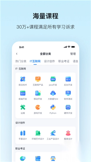 【IT互联网】IT 涵盖JAVA,C#,python,PHP,运维,测试,大数据,互联网营销、产品经理课程等,更有各种优质的机构如人人都是产品经理、动脑学院、学神IT教育、零檬班、课工场等。