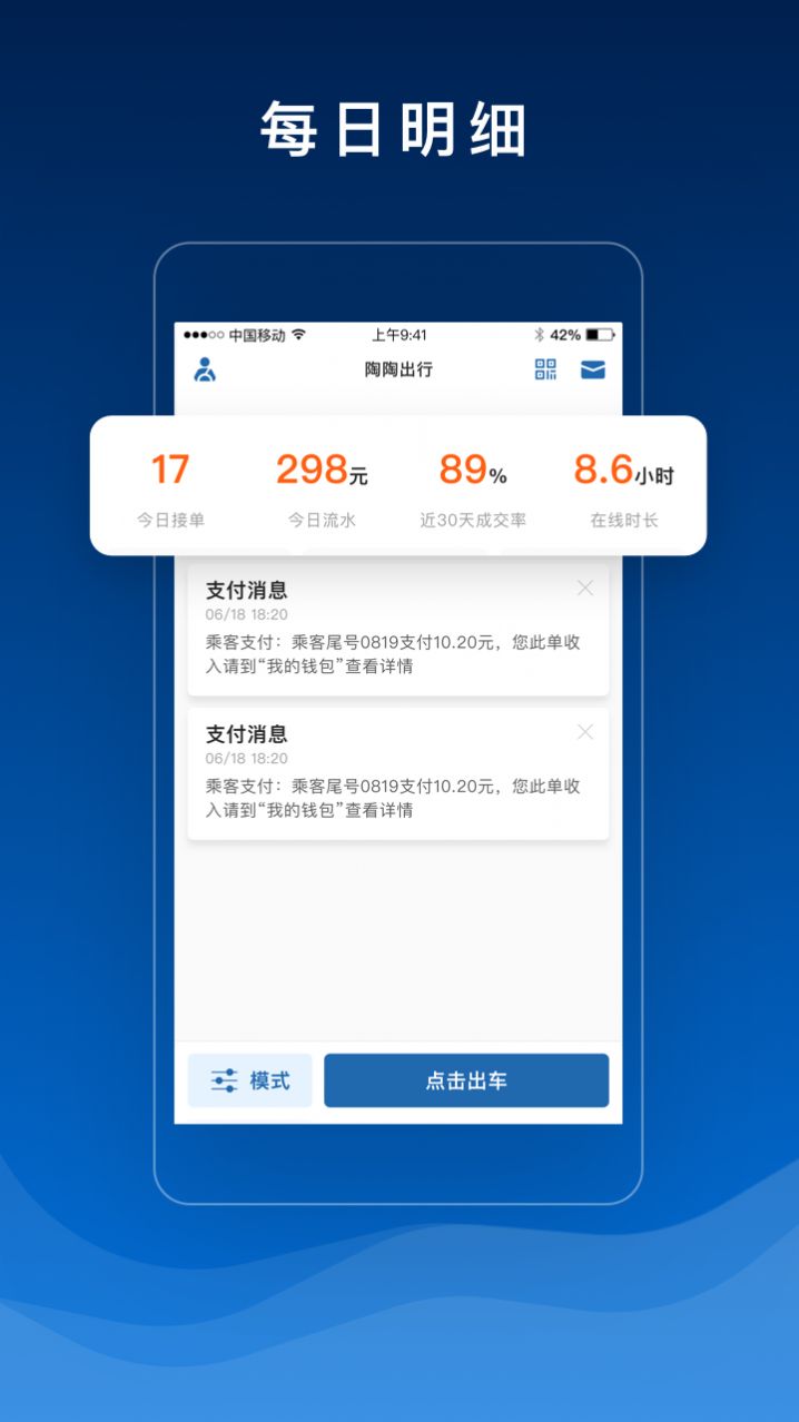 它可以使驾驶员有更多的空闲时间轻松赚钱,他们可以每天自动接收订单,并可以随时检查当天的订单信息。 每天的收入一目了然,因此您可以看到您的每日收入。