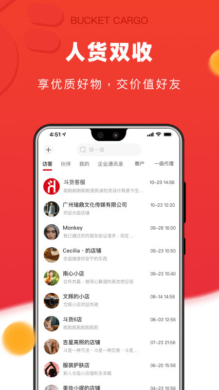 所有的用户可通过任务积分换取或者特权购买的方式,获得从商的资格。一旦成为斗货商人,皆可获得上万家知名品牌的分销权,0代理0库存,物流配送全程由供应商解决。从商的硬壁垒,从此一去不复返。