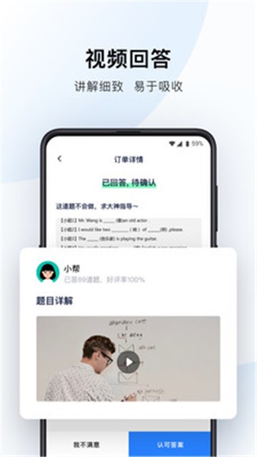 1、支持通过拍照,语音或者视频等不同方式提问,能够更加高效的沟通。
