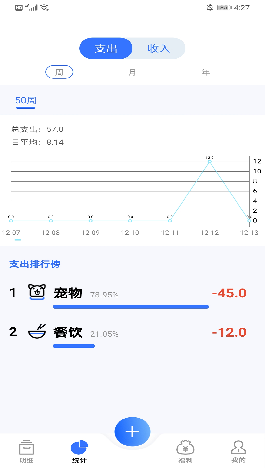快捷分析-图标账单展示,每一种花费,年月周日展示;