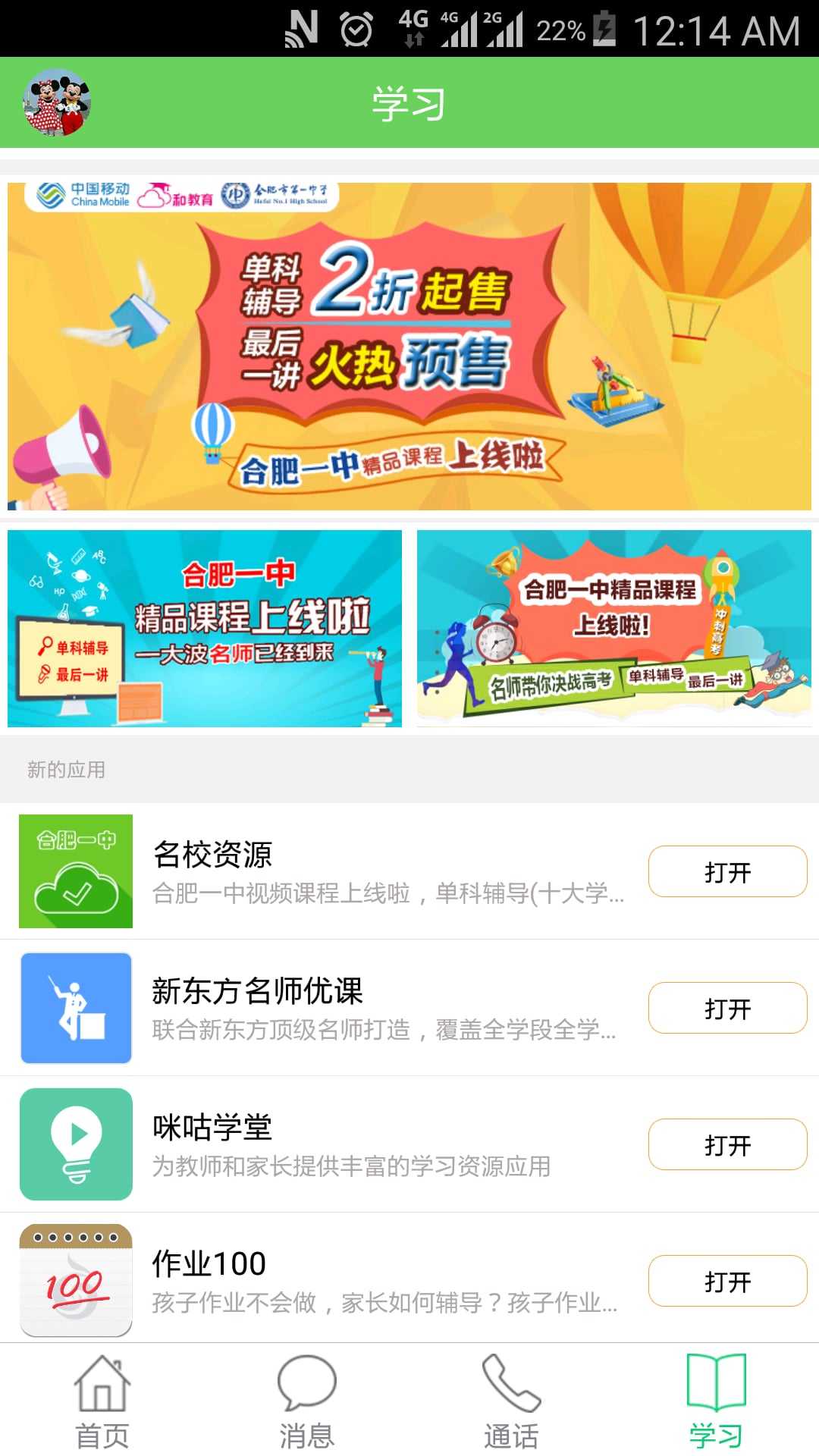 2、内容资源:提供面向学生、家长、教师的在线教育内容汇聚平台,如合肥一中(单科辅导、解密母题、zui后一讲等)、妙笔作文、精彩资讯、作业100、新东方名师优课、咪咕学堂(优等生、乐智成长、中高考护航、同步学、点读宝)。