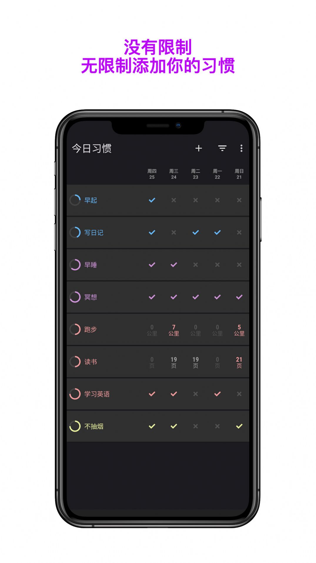 今日习惯app提供了一种科学有效的方法来帮助用户建立和养成良好的习惯,根据用户设定的习惯,定时提醒用户进行习惯的执行,并记录习惯的完成情况,智能分析用户的习惯记录,根据分析结果为用户提供科学合理的改进建议,帮助用户更好地坚持打卡并形成良好的习惯,软件的界面设计简洁美观,操作简单易上手,同时支持多种语言,用户可以选择自己的母语来使用软件。