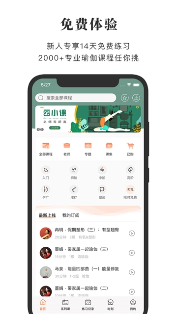 第一视角即刻带入真实瑜伽馆体验,轻松融入并完成每一节瑜伽课