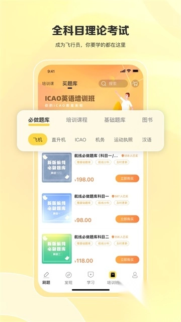 专业教研团队精心研制,全面覆盖航空各类考试用书与资料,目前已上线航空理论、ICAO英语、机务理论、机务英语等考试项目资料,更多项目持续更新中,航空科目学习缺少资源?这里就有你想要的!