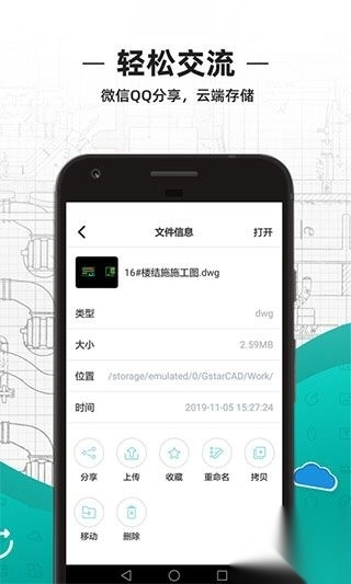 7、DWG轻松分享,支持微信、QQ、微博等社交工具,CAD图纸交流再无障碍;