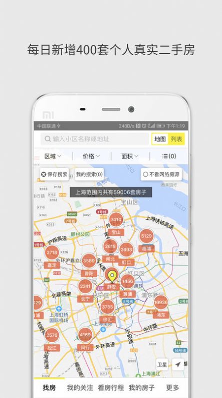 1、全网个人房源、免佣金房源海量呈现;实时定位,地图标选房源,小区房源一目了然。