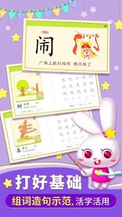 1、形象互动:丰富有趣的配字动画帮助宝贝轻松理解汉字含义,提高宝贝学习兴趣。