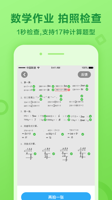 完成练习立刻了解练习情况,不用再等老师批改